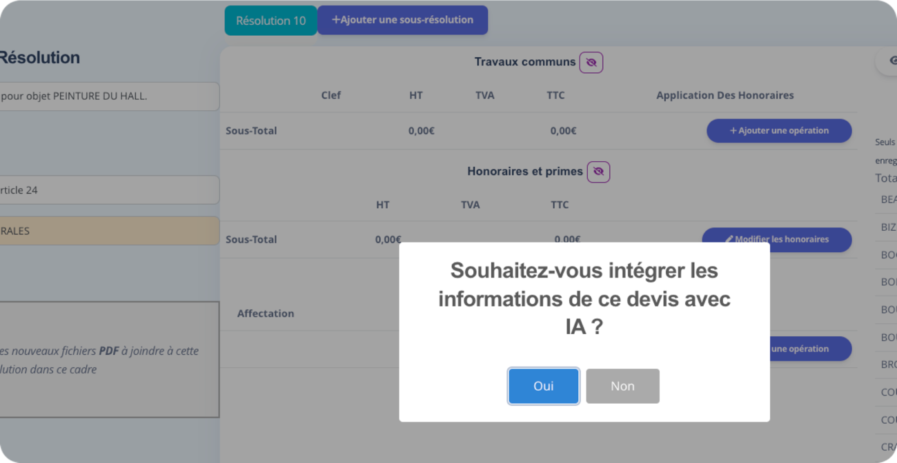 Il traite les informations du devis et les intègre dans les Résolutions Travaux.