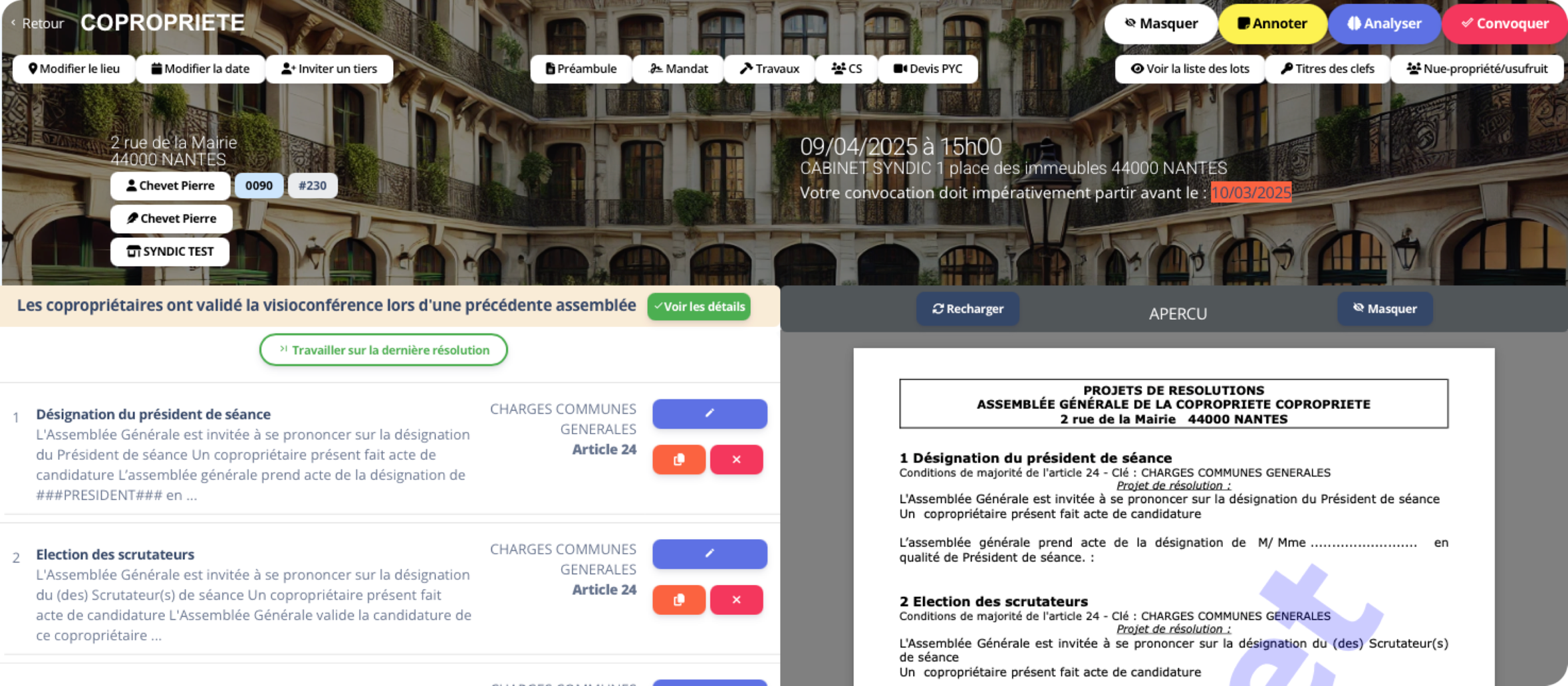 👉 Assister les syndics dans le processus de conception, de gestion et d’archivage des réunions de copropriétaires